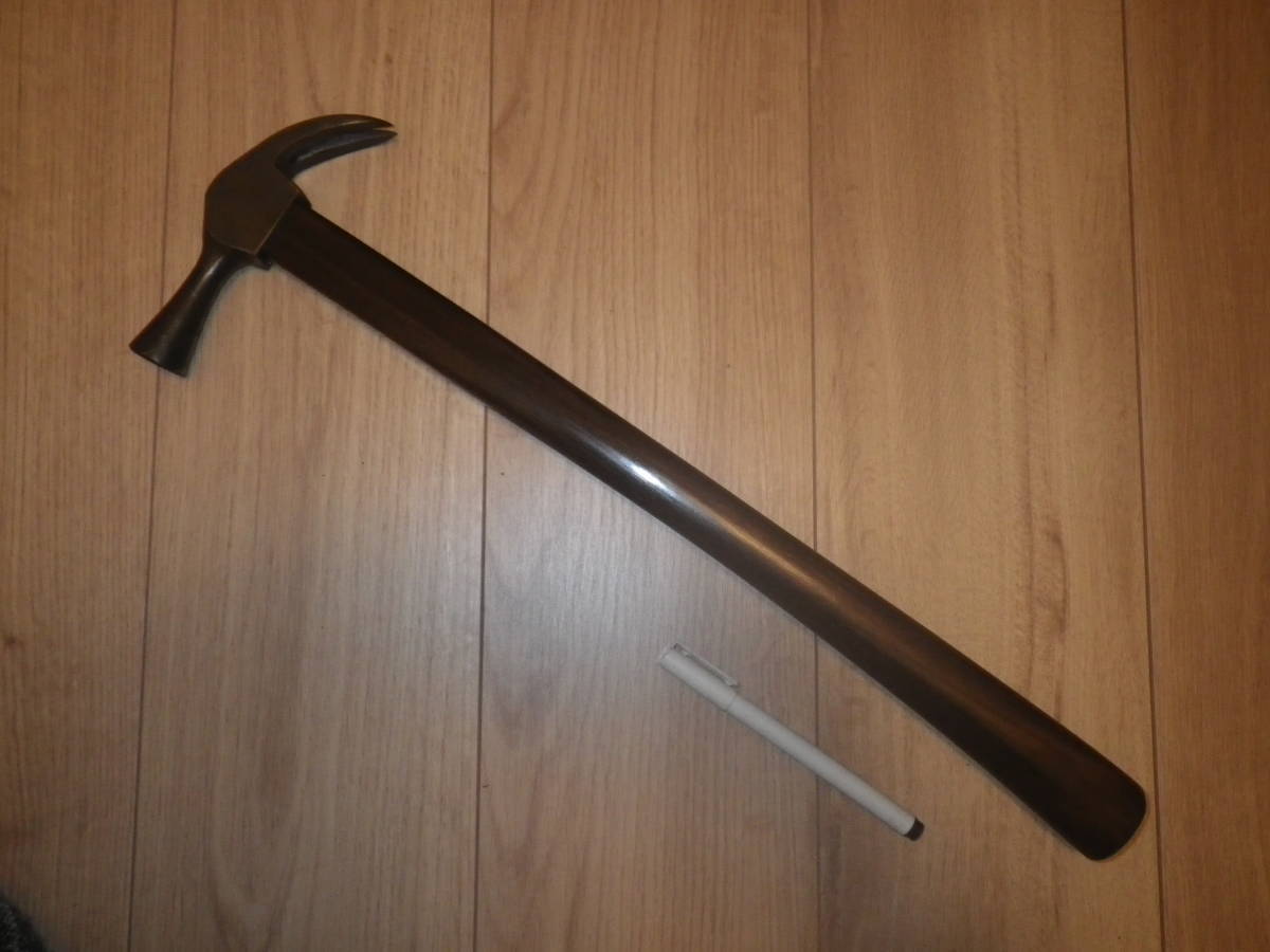 - 未使用長期保管品 鋼製伊予型仮枠ハンマー、全長48㎝。 頭部サイズ「小」止無し,猪の牙で磨いた黒檀柄付き 検索検索玄能釘抜きバール型枠