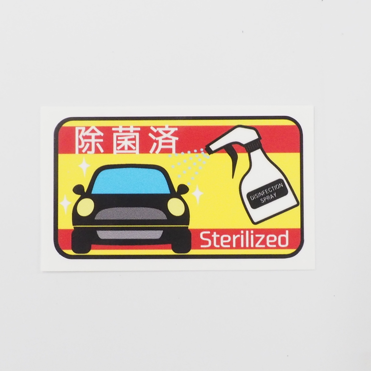 - 代車 レンタカーに 除菌済ステッカー 除菌 消毒 コロナ対策 感染予防 除菌シール ウイルス対策 赤 10枚セット