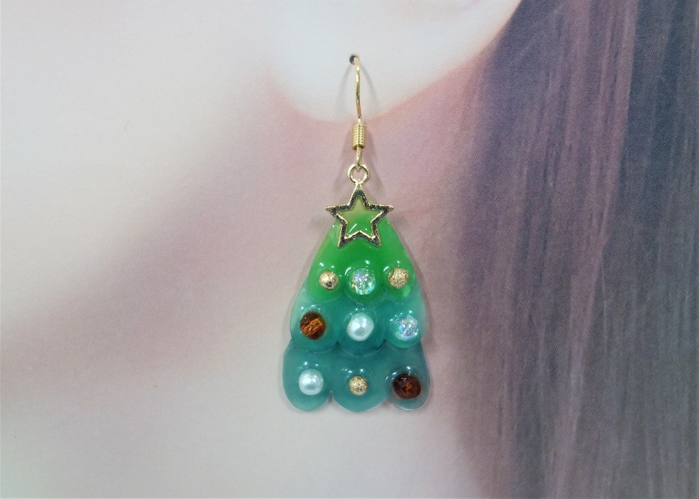 - 【プラ板/クリスマスツリーピアス/秋冬アクセサリー】送料無料/ハンドメイド