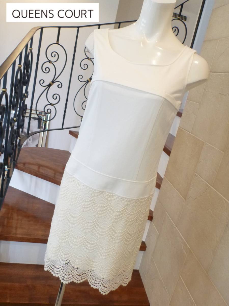 - 2.5万 超美品 QUEENS COURT(クイーンズコート) ★アイボリー 刺繍レース使い ワンピース 1 S相当