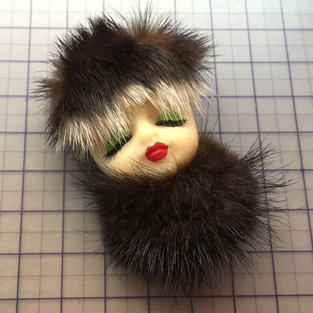 - 美品 美人 天然毛皮 手作り ブローチ No.3996