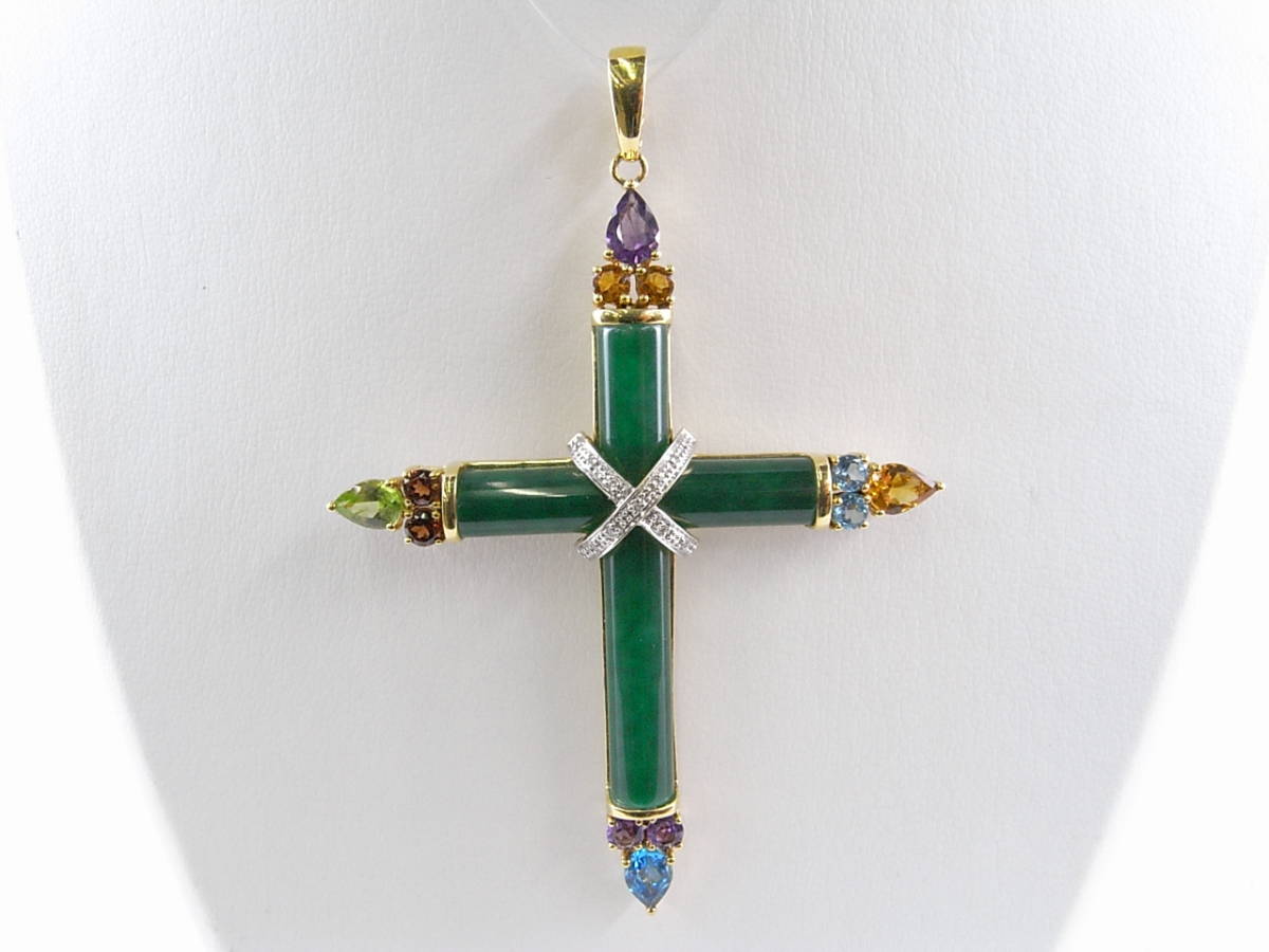 - 送料無料 ペンダント トップ ダイヤ クォーツァイト 水晶 マルチカラー ストーン クロス 18K 750 イエローゴールド ソーティング付 h142357