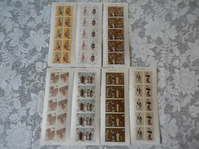 - 額面 3700円 未使用 切手 7シート 【50円×10 5枚 60円×10 2枚】 コレクション 彦根屏風 立美人 まとめて 他 美人画 コレクター セット