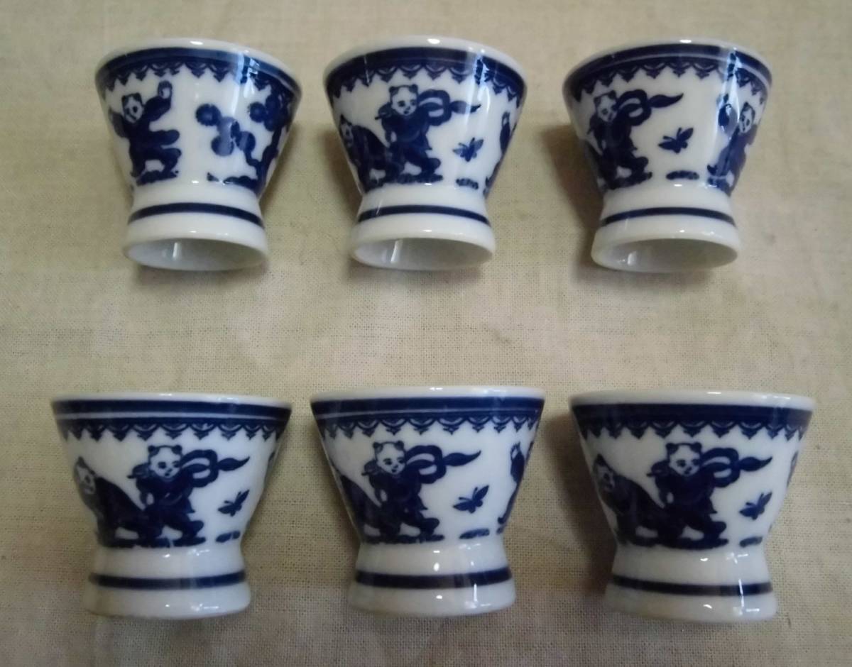 > お猪口 唐子柄 染付 6客 ぐい呑み 盃 杯 酒器 工芸品 陶器 レトロ アンティーク