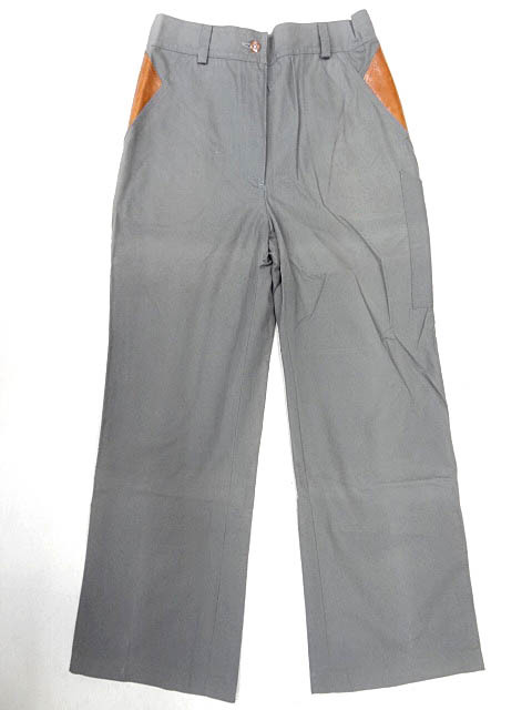 - ビンテージ フォックス ラン ユーゴスラビア製 希少 レディース 変形 デザイン レザー カーゴ ワーク パンツ スラックス グレー 灰 茶 珍品