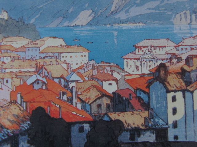 - 吉田博、【ルガノ町】、希少な額装用画集より、美品、新品額装付、送料込み