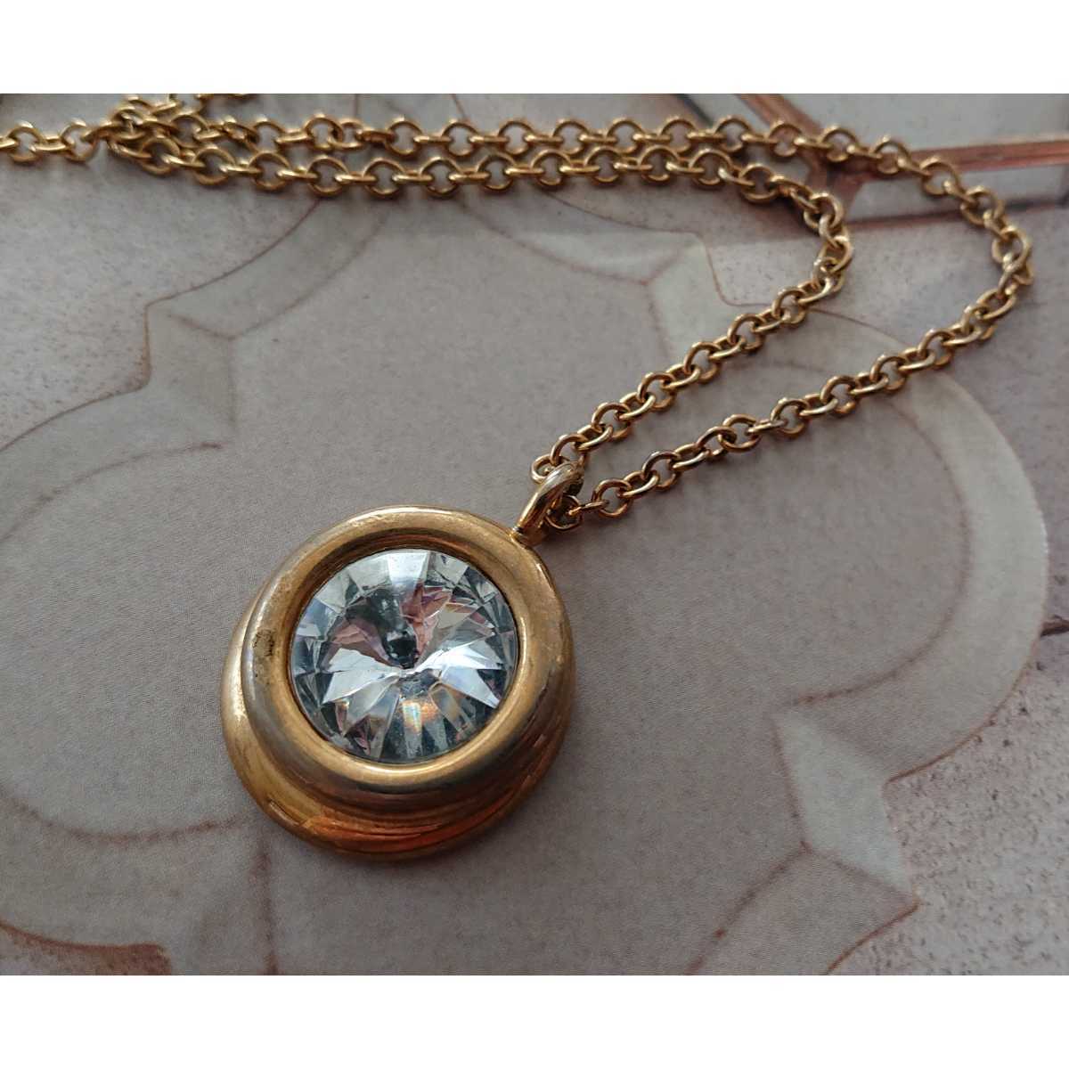 > □存在感&ゴージャス□大きい1粒クリアラインストーンビジューのロングペンダント□ゴールドカラーチェーン□
