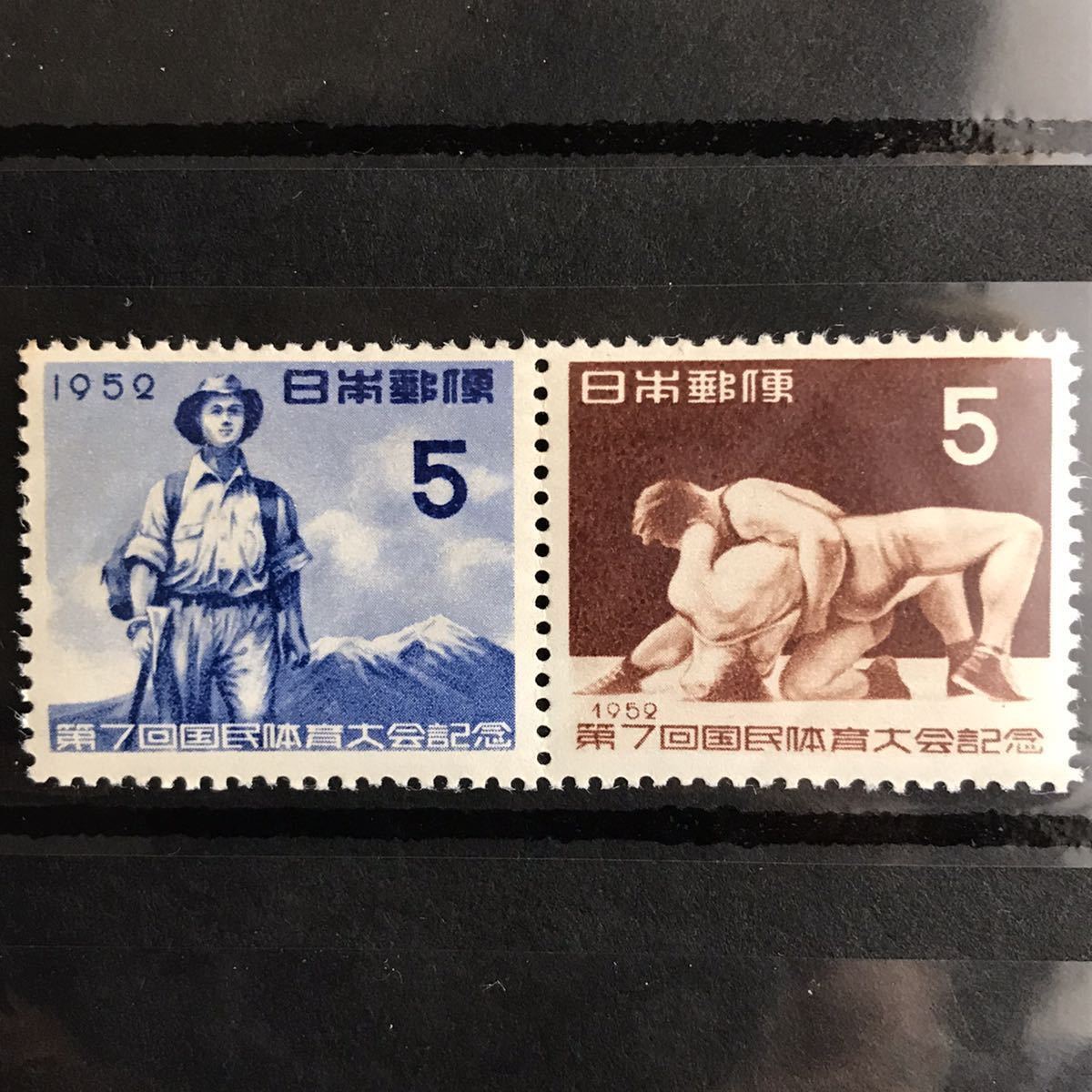 - 記念切手「第7回国民体育大会記念 2種」5円2枚★1952年発行・長期保管品