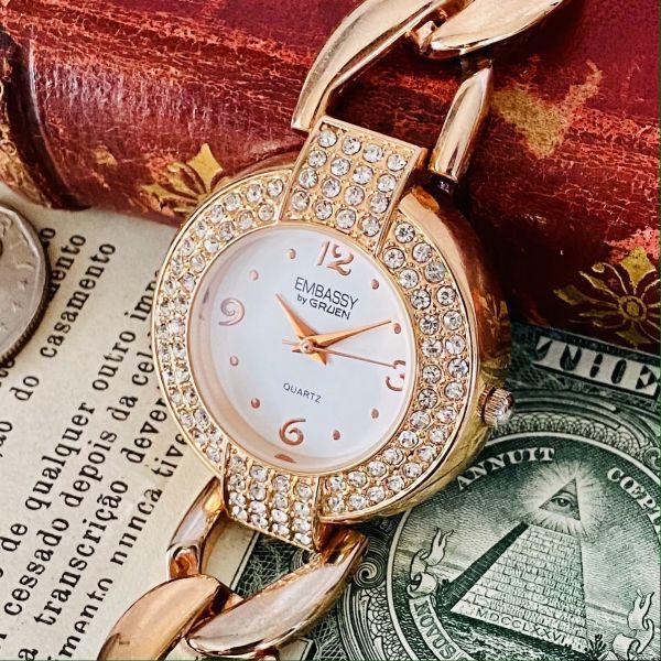 - 特別セール!!【高級時計グリュエン】Embassy by Gruen クォーツ デイト 腕時計 レディース ビンテージ カクテル ウォッチ クリスタル