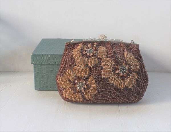 - A210114◆昭和レトロ◆ピーコック アンティーク ビーズのバッグ ハンドバッグ 手提げ 花柄