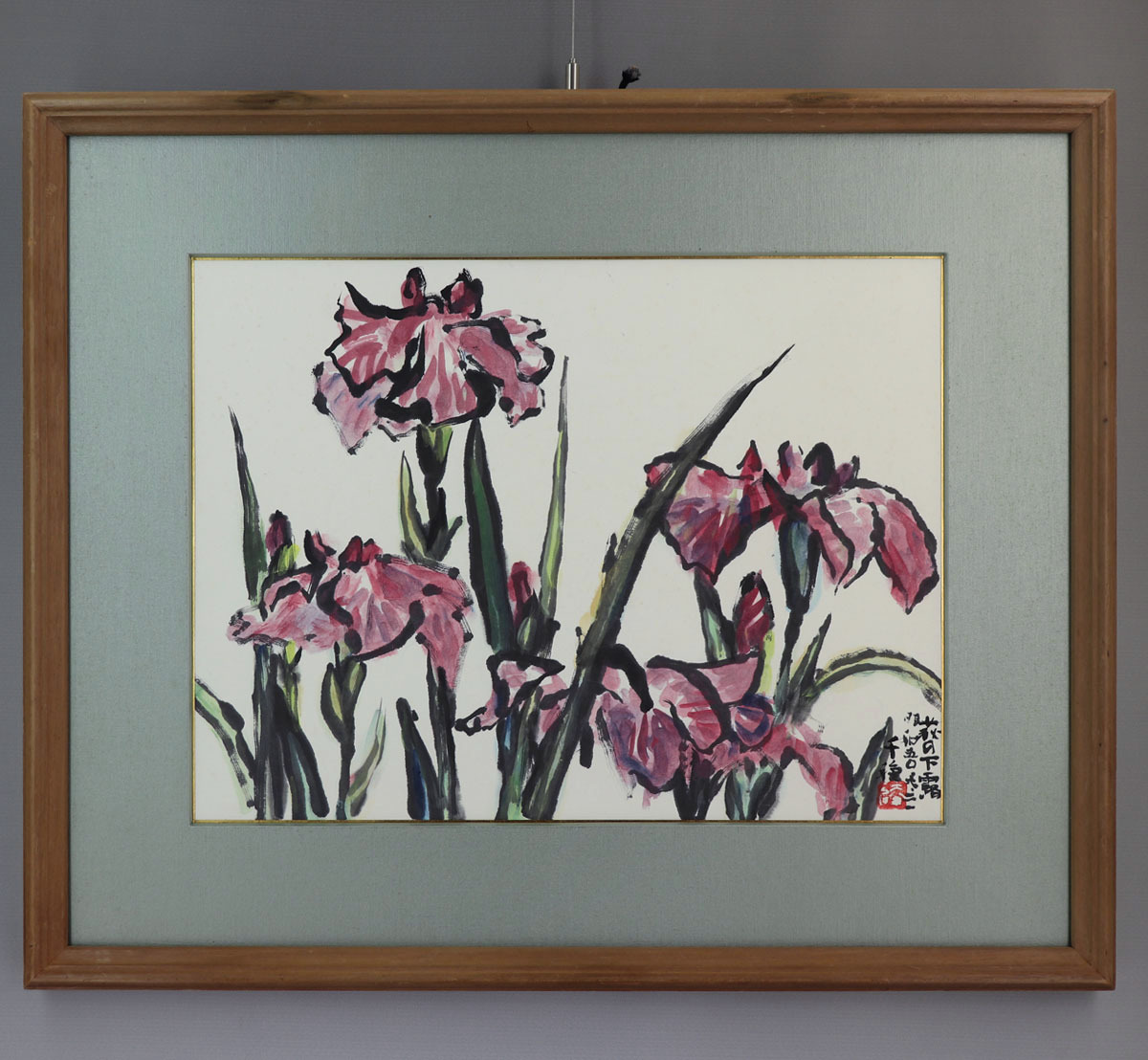 - 【肉筆】在銘【萩の下露】◆紙本◆ガラス付◆額 v01002