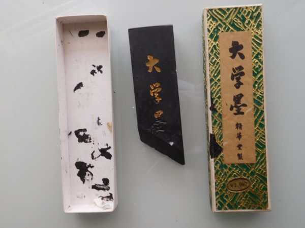 - 書道 墨020207 精華堂 大学墨 ワレ 3.5X12X1.6CM 昭和レトロ 1980年代