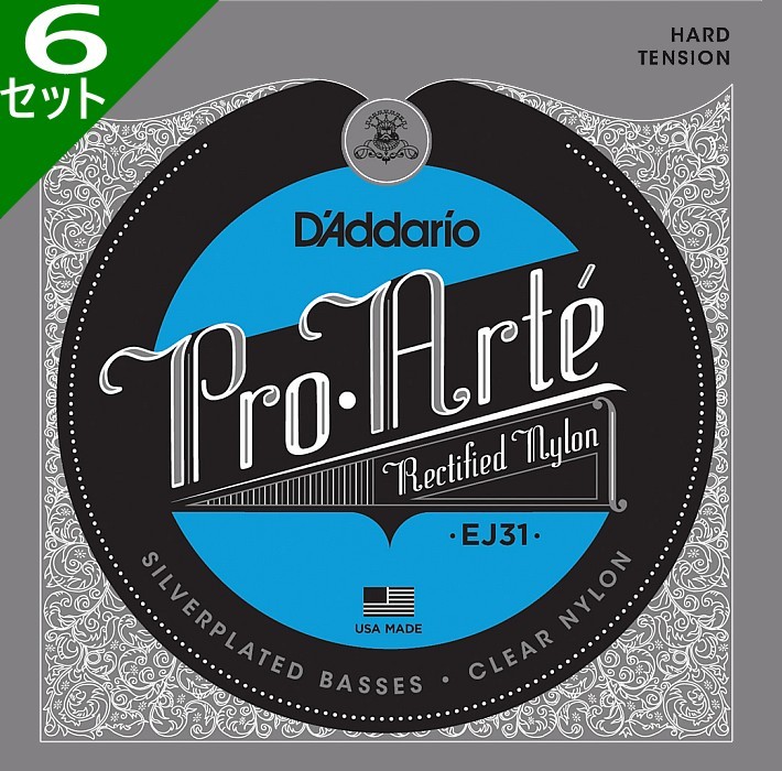 - 6セット D'Addario EJ31 Pro Arte Rectified Silver/Clear Hard ダダリオ クラシック弦