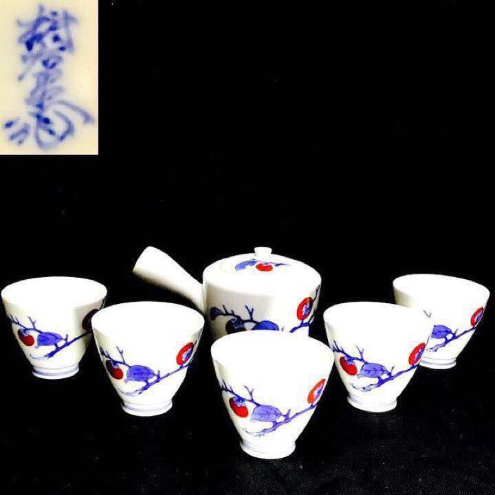 - 酒井田 柿右衛門 染錦 柿文 茶器 急須&湯呑5客セット