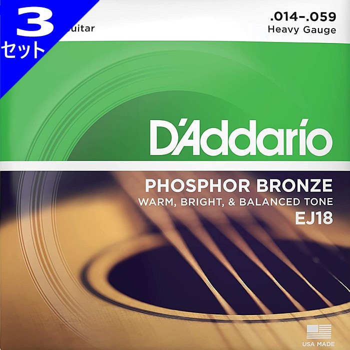 - 3セット D'Addario EJ18 Heavy 014-059 Phosphor Bronze ダダリオ アコギ弦