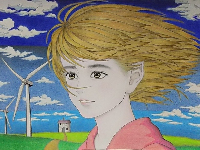 - オリジナル手描きイラスト 「そよ風の中へ」アナログイラスト