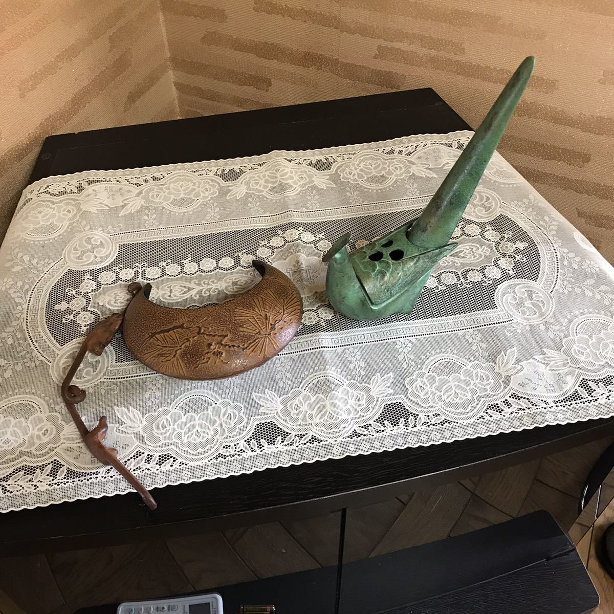 - 花器 鋳物製 花飾り?花瓶?月 猿 鳩?