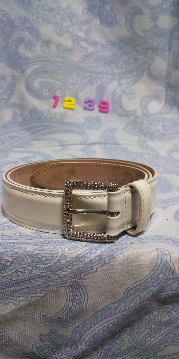 - 1239ドルチェ&ガッバーナ ラインストーン装飾バックル オフホワイト色系エナメル系レザー ベルト箱保存袋タグ付イタリア ミラノ75