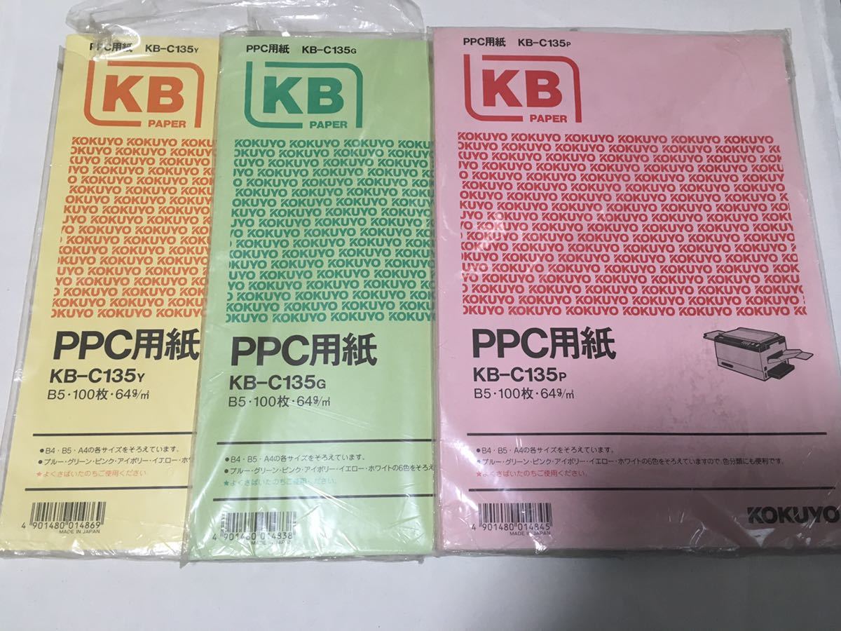 - 【注:使いかけ】KOKUYO PPC用紙 B5サイズ グリーン88枚・ピンク72枚・イエロー66枚 KB-C135 GPY KB PAPER コクヨ