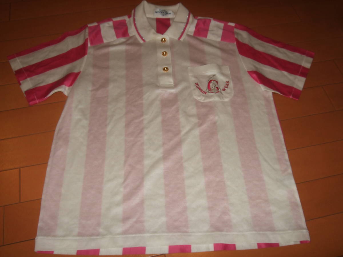- 良品即決☆マンシングウェア ポロシャツ☆レディーズM ピンク×ホワイト