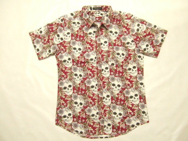 - 横浜最新 美しいドクロ 💀 カジュアルシャツ赤 L 送料220円ξtsξ ξ ξpshξξ6s