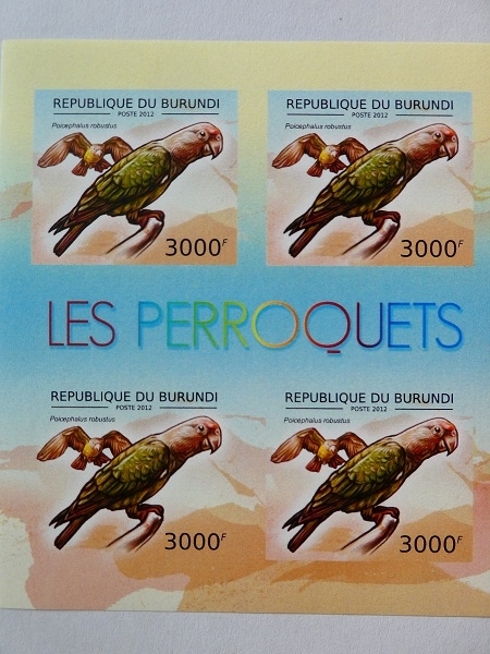 - ブルンジ切手『オウム』鳥 無目打 2012 A-d