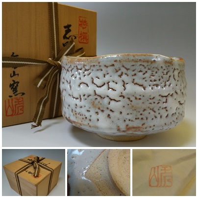 - 【M-38】美濃焼 秀山窯 志野茶碗 共箱付 茶道具