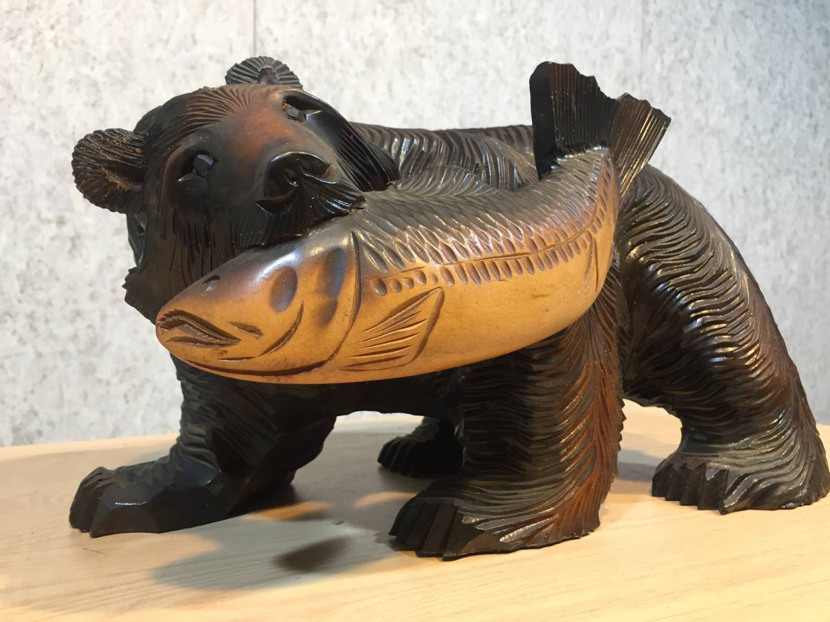 > 『 熊彫刻 』 C-3 工芸品 大型熊彫刻 木彫りの熊 床の間置物 一刀彫 玄関置物 雑貨 民芸品 ビンテージ レトロ アンティーク ★古時家★