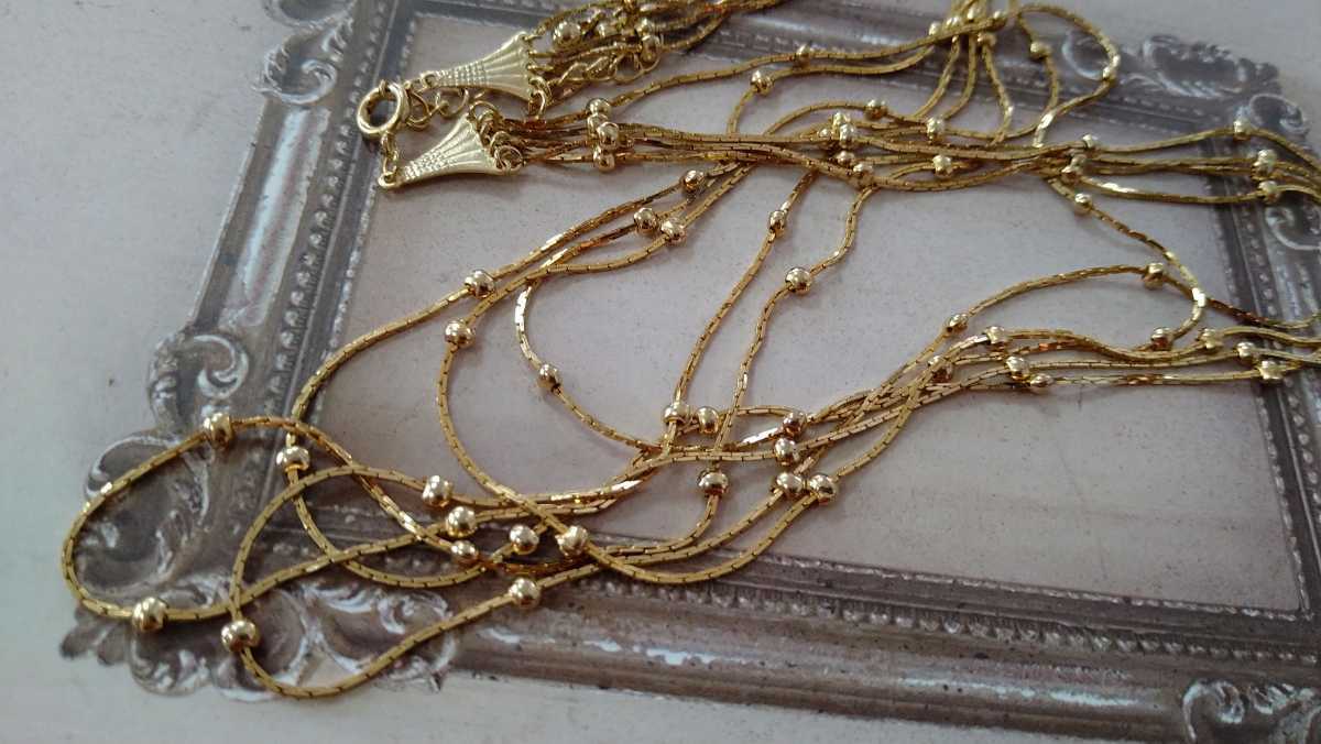 - □ビーズ&ゴールドカラー・3連ネックレス□