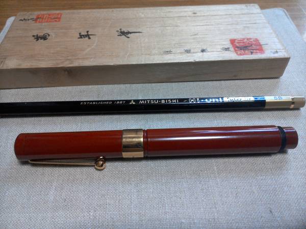 - 現代の名工 植原榮一作 朱漆18金リング万年筆