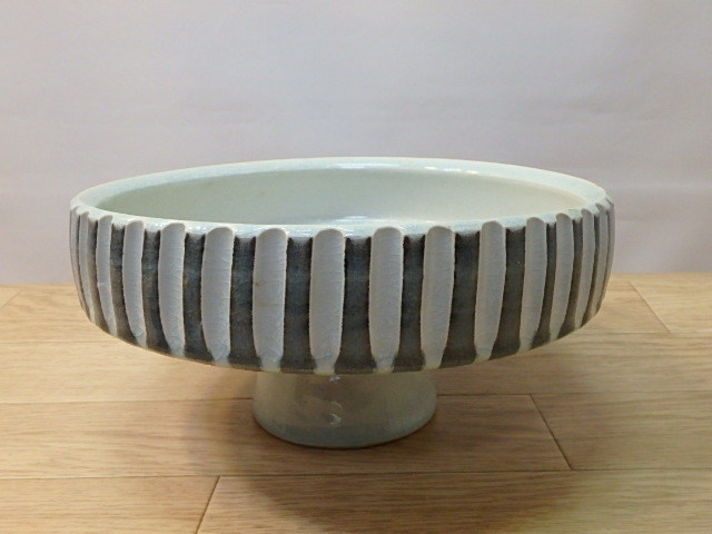 > 100s106h 花器 水盤 脚付き 直径約24cm 高さ約11.5cm 花入 高台 丸型 中古(北海道・沖縄・離島は発送不可)