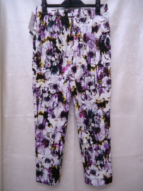 - 【KCM】MATO-73★新品★【AQUAMARINE】レディース 花柄 サブリナパンツ ストレッチ ウエストゴム パープル系 M