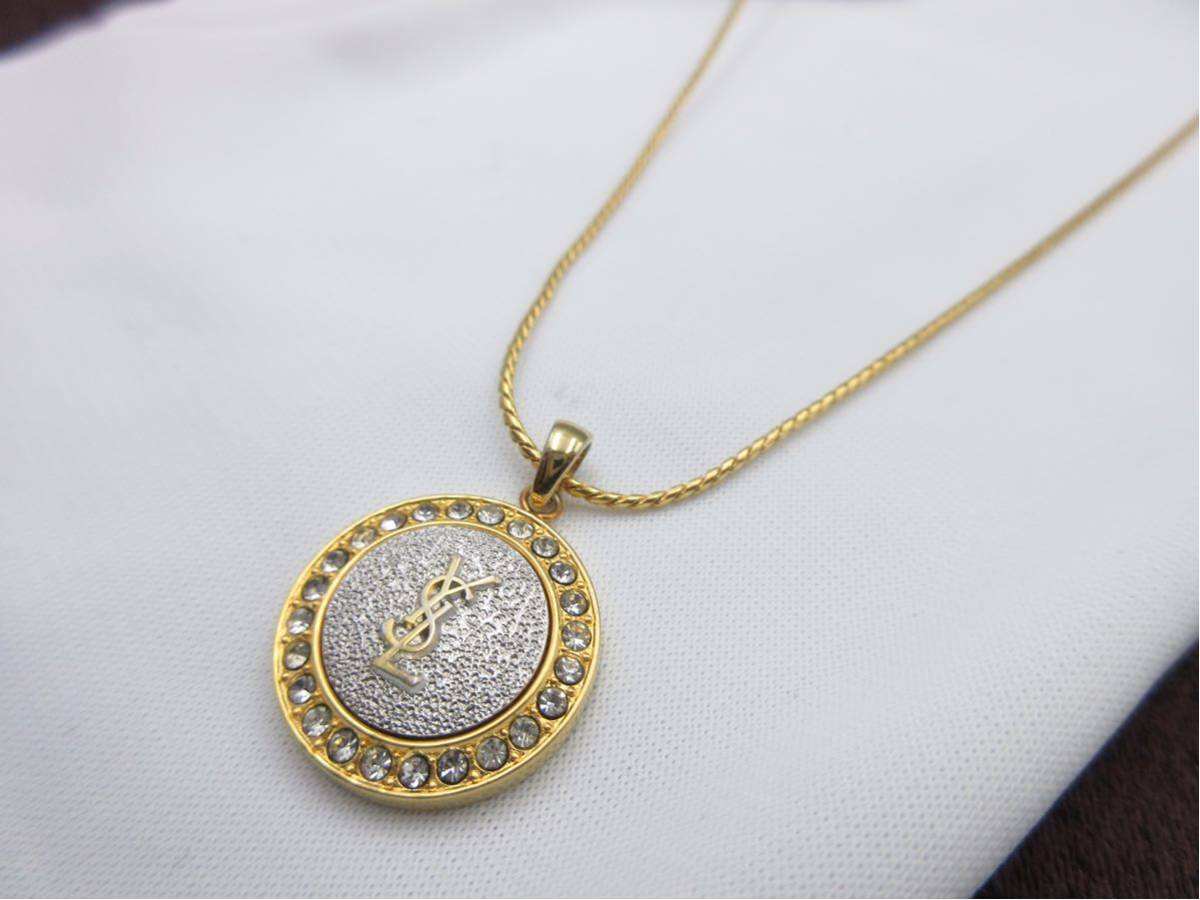 - 【美品】★ イブサンローラン ロゴ YSL ネックレス ゴールド Yves Saint Laurent ラウンド ストーン プレゼント 結婚式 be-22-50