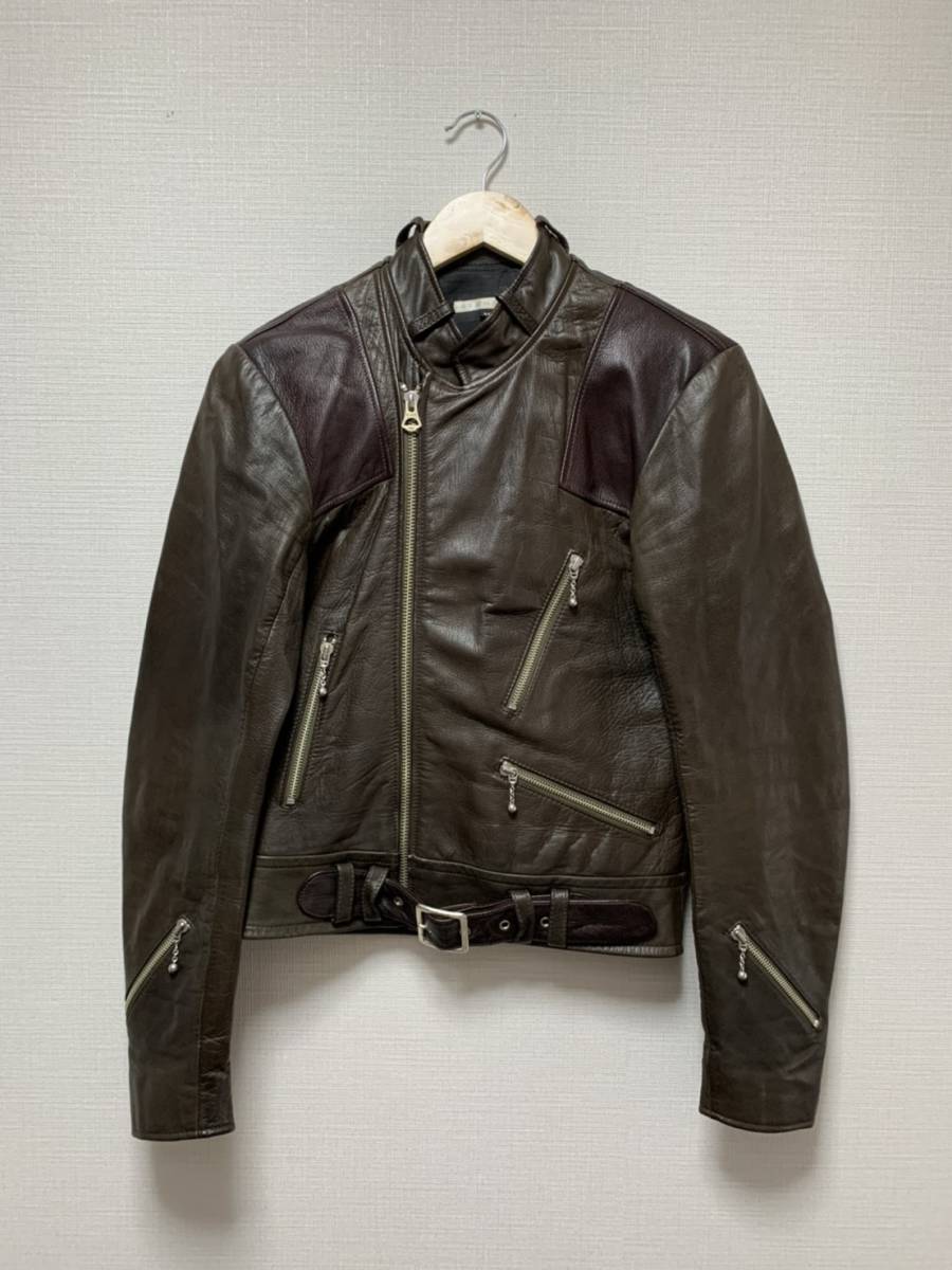 > [REDMOON] ツートン バイカーダブルライダース レザージャケット 36 ブラウン 山羊革 レッドムーン
