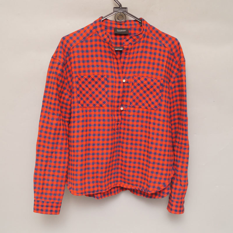 > ys08-SCOTCH&SODA スコッチ&ソーダ ネルシャツ S レッド系 長袖 チェック ノーカラー 襟なし
