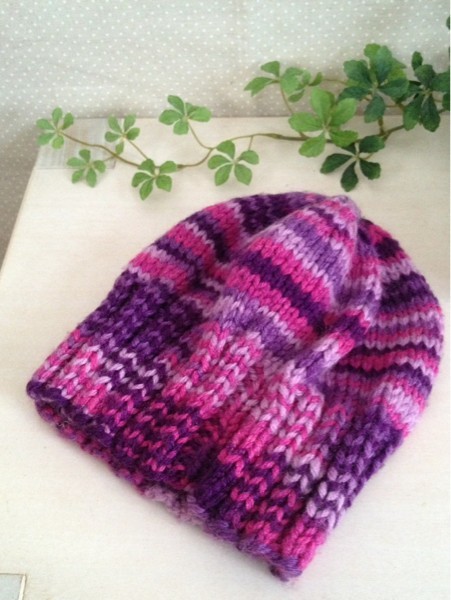 - **ピンク、紫系のミックスカラーニット帽・幼稚園サイズ**