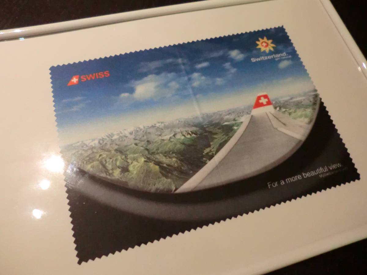 - スイス航空 非売品 ノベルティ 限定品 レア物 メガネ拭き スイス 山 風景 飛行機 アート インテリア オブジェ 絵 置物 オブジェ グッズ