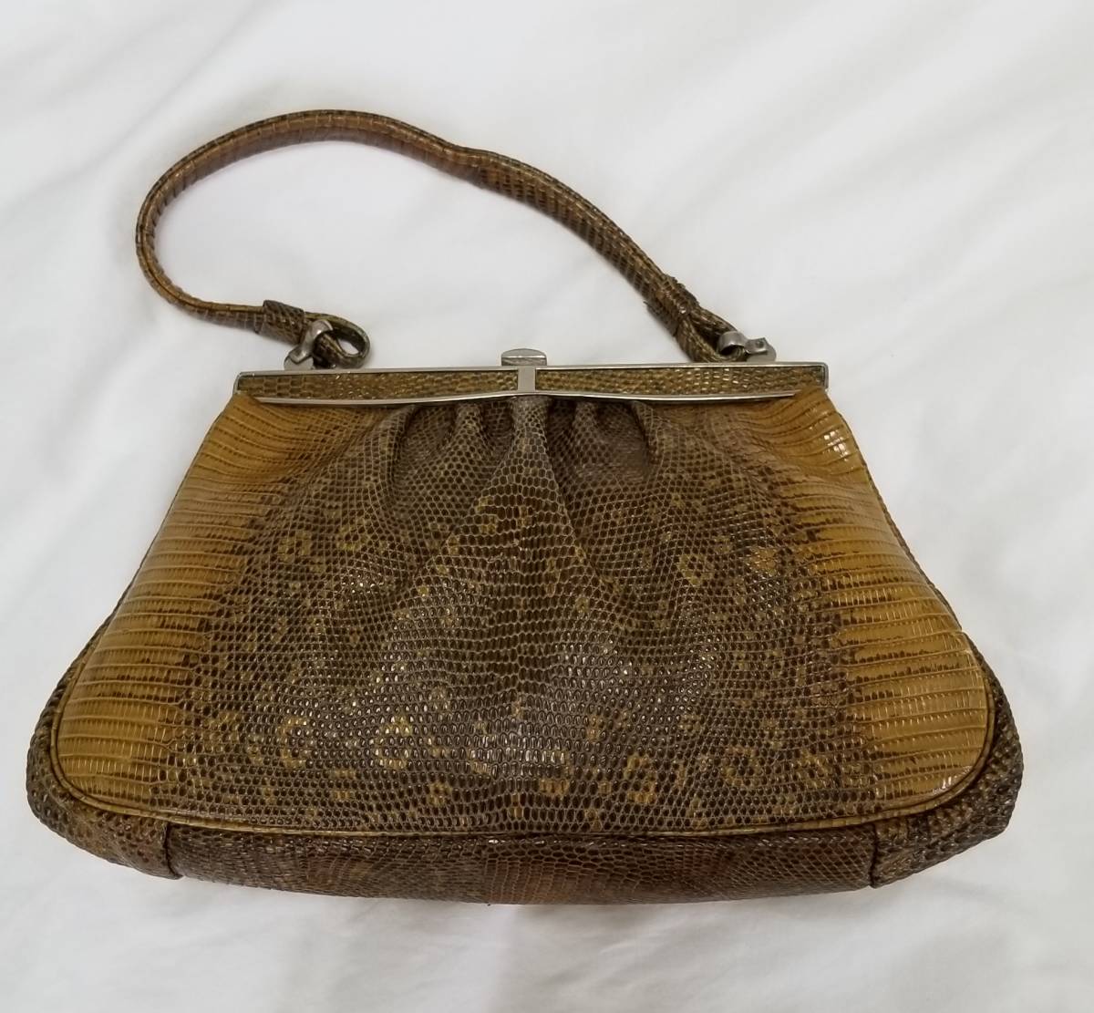 - 本革リザド(トカゲ)バッグ レトロ 70’sヴィンテージ クラッチバック希少品