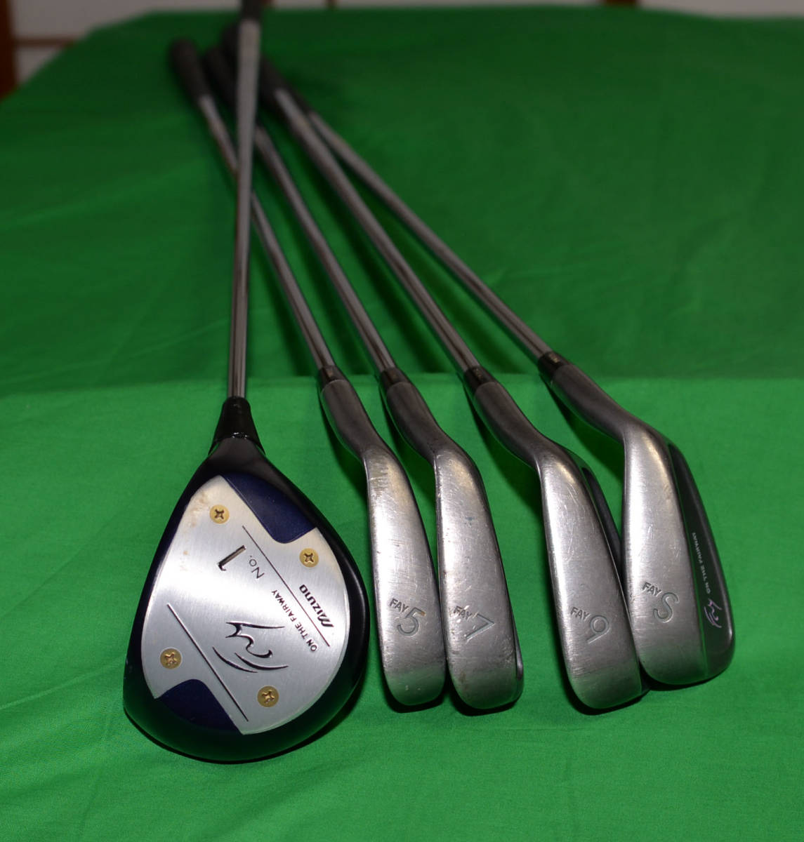 - ミズノ FAY アイアン 4本(#5、#7、#9、#S) ドライバー 1本 中古