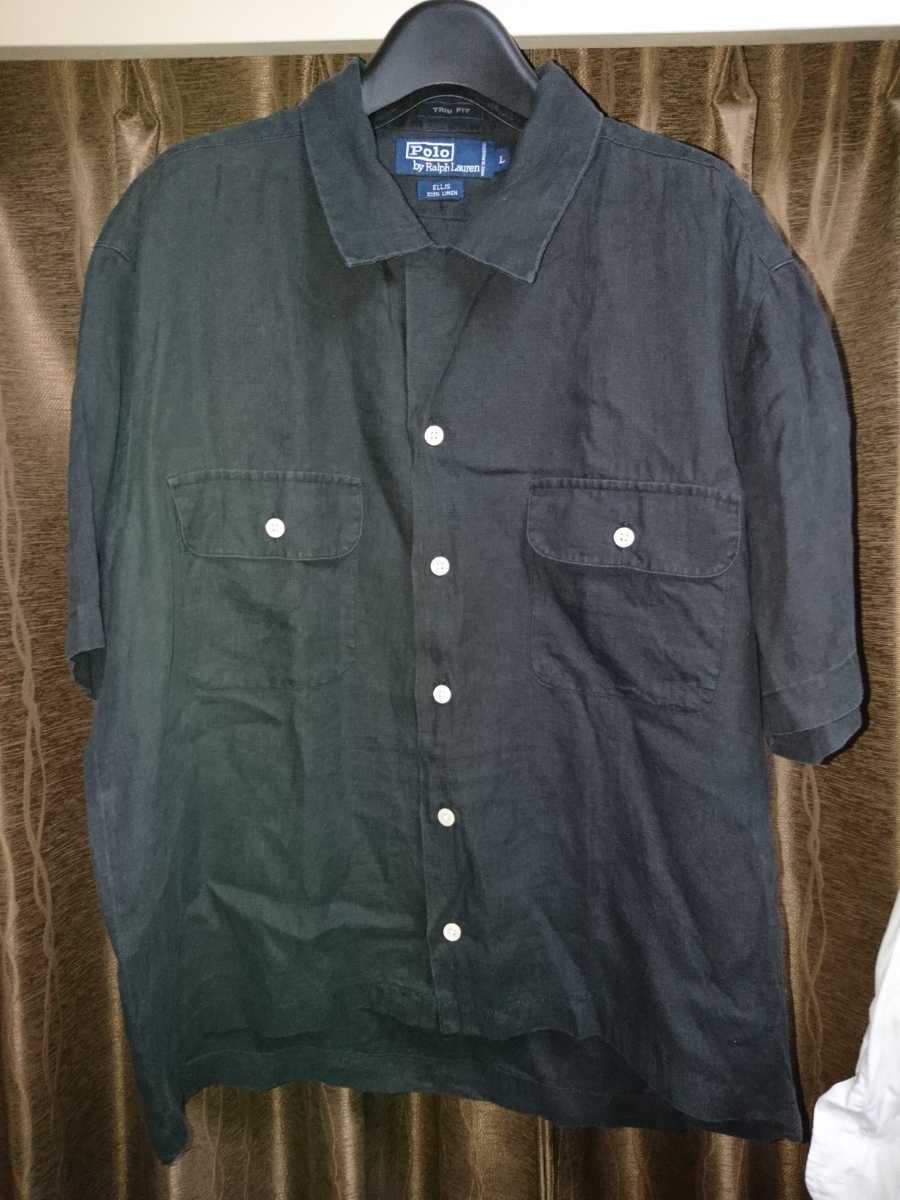- 90's POLO by RALPH LAUREN ラルフローレン 半袖 リネン開襟シャツ オープンカラー ボックスシャツ L ブラック