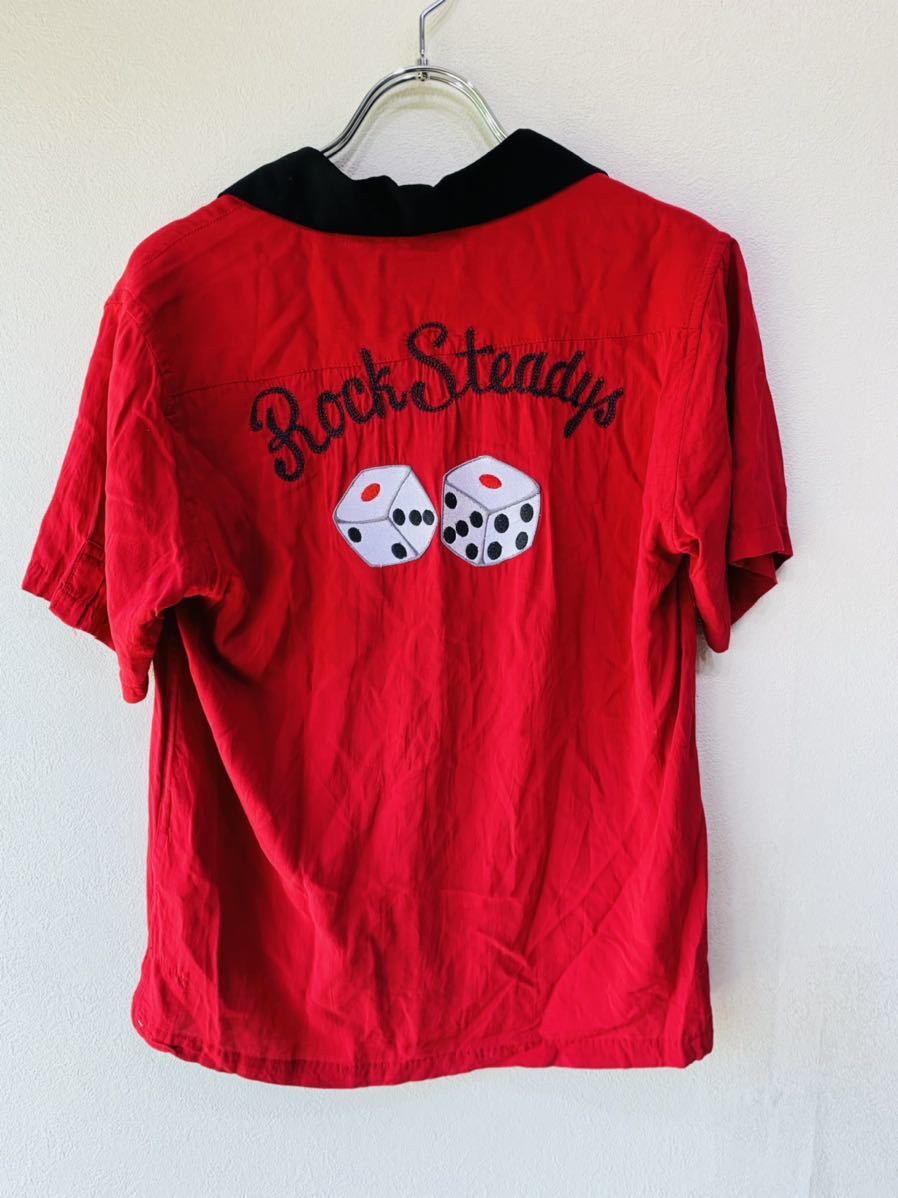 - 【人気】Happy Jhon シャツ 赤/レッド レーヨン100% サイコロ 刺繍 Sサイズ 相当(K569)