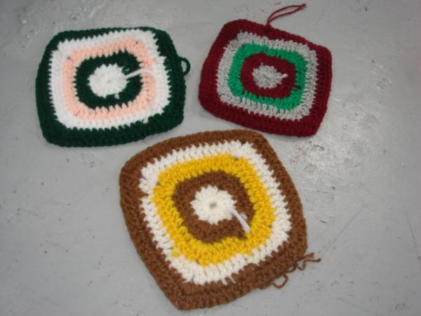 - 新品 手編み ハンドメイド ヒッピー コースター 鍋敷き 3枚セット ニット 編み物 ウールワーク