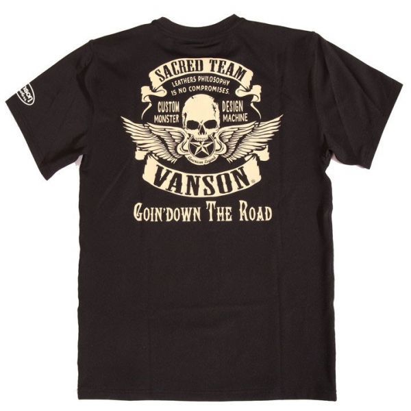 > VANSON ドライ半袖Tシャツ スカルウィング ACV-903 ブラック XL 当店別注 バンソン 吸汗速乾 抗菌防臭 UVカット