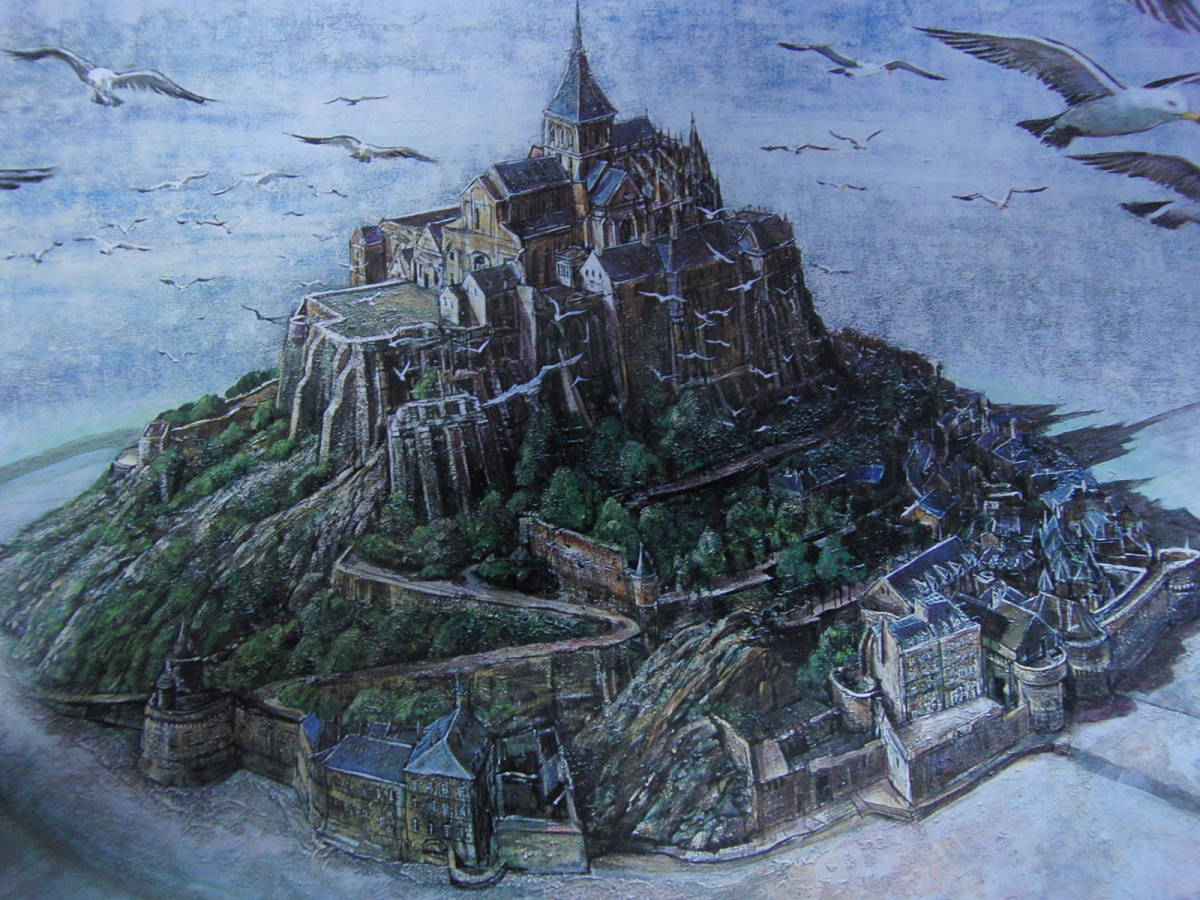 - 福田博司、〈モンサンミッシェル〉、希少画集画、高級新品額・額装付、状態良好、送料無料