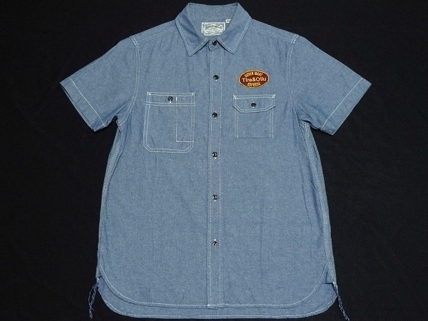 - 美品HOUSTONヒューストン[40016]半袖シャンブレーワークシャツM(38)NAVY\6050