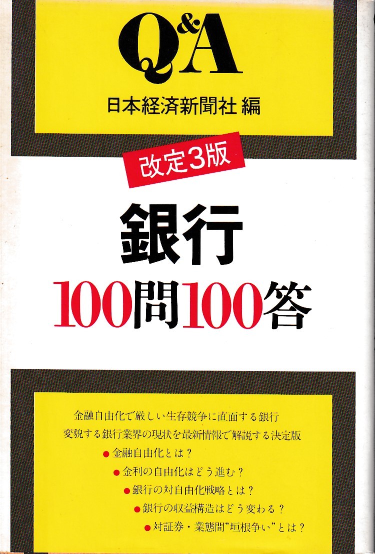 - Q&A 銀行100問100答 改定3版 編者 日本経済新聞社 昭和63年2月29日 3版8刷 日本経済新聞社 4532082463