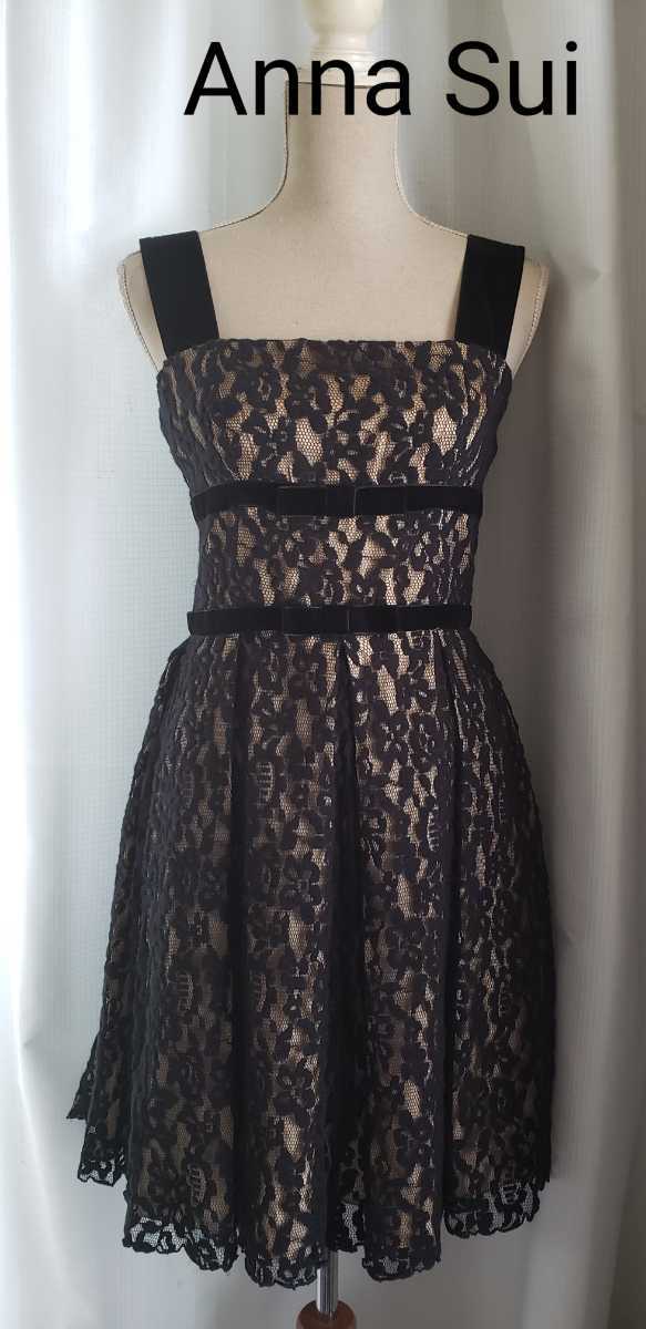 - 大変美品 Anna Sui USA製 可愛いレースドレス 黒 フォーマル可