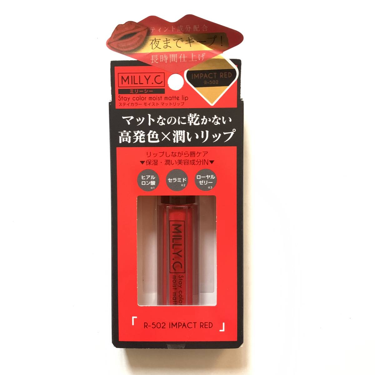 > 新品 ◆MILLY.C (ミリーシー) ステイカラーモイストマットリップ R-502 インパクトレッド (リップカラー)◆ リップグロス 口紅