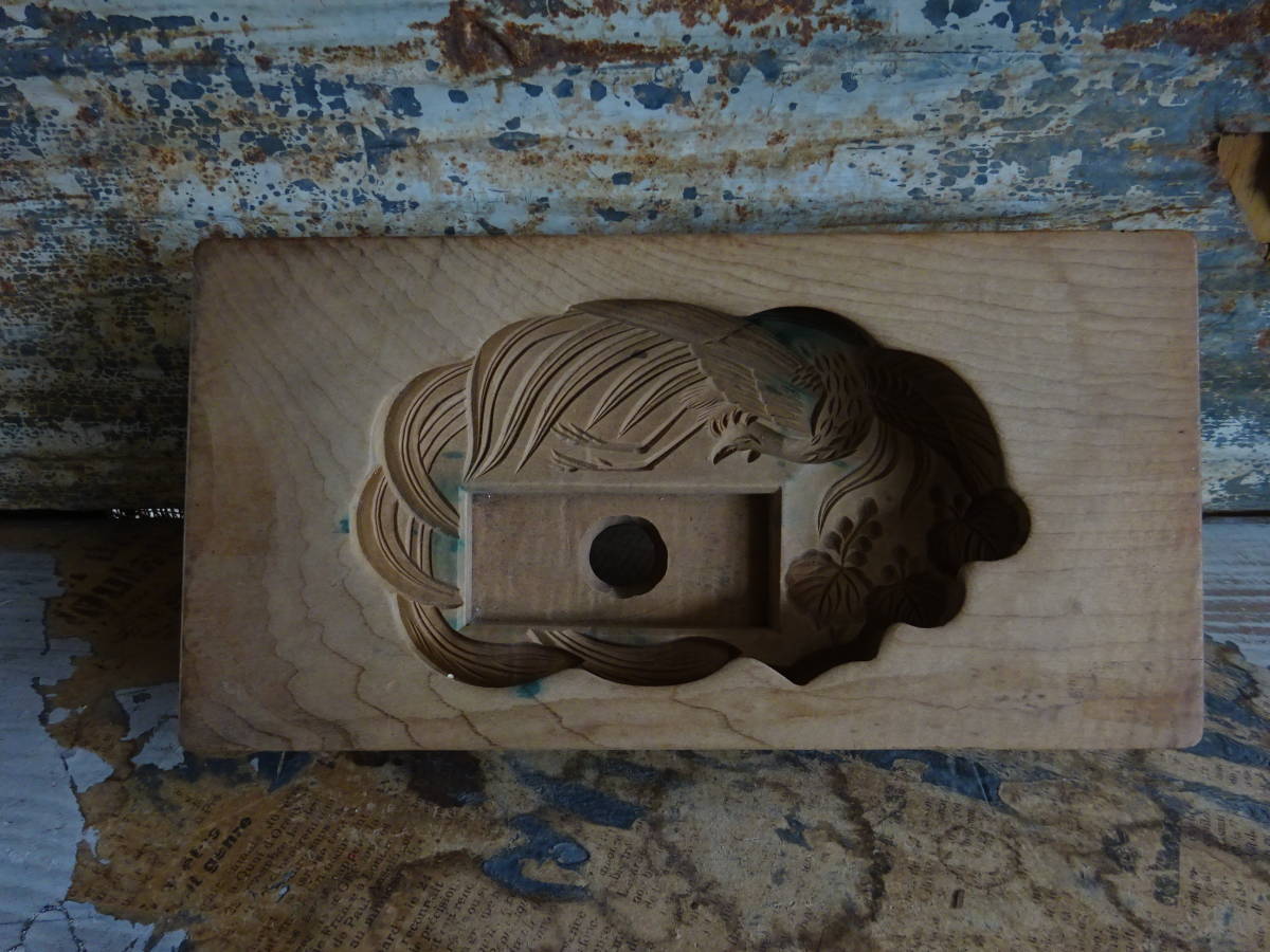 - 【和菓子押し型】彫刻木製型板叩き板古道具アンティーク骨董羽子板インテリア無垢材インダストリアル職人道具昭和レトロプリミティヴアート