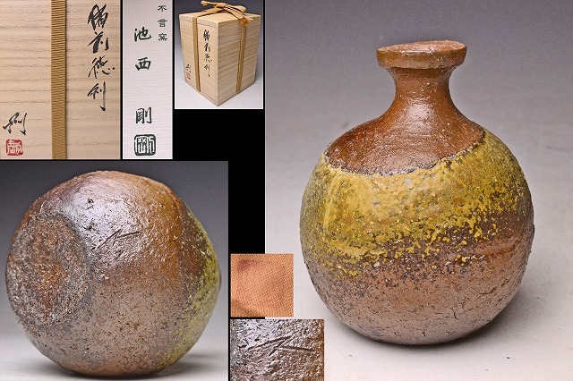 > 池西剛 ★ 備前 窯変 徳利 ★ 共箱 共布 栞 ★ 独特の胡麻景が良い景色の逸品 ★ 酒器 ★ 古備前研究 ★四国 ★